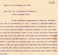 Carta de João Corrêa Ferreira da Silva a Borges de Medeiros , RS, 15/09/1920.