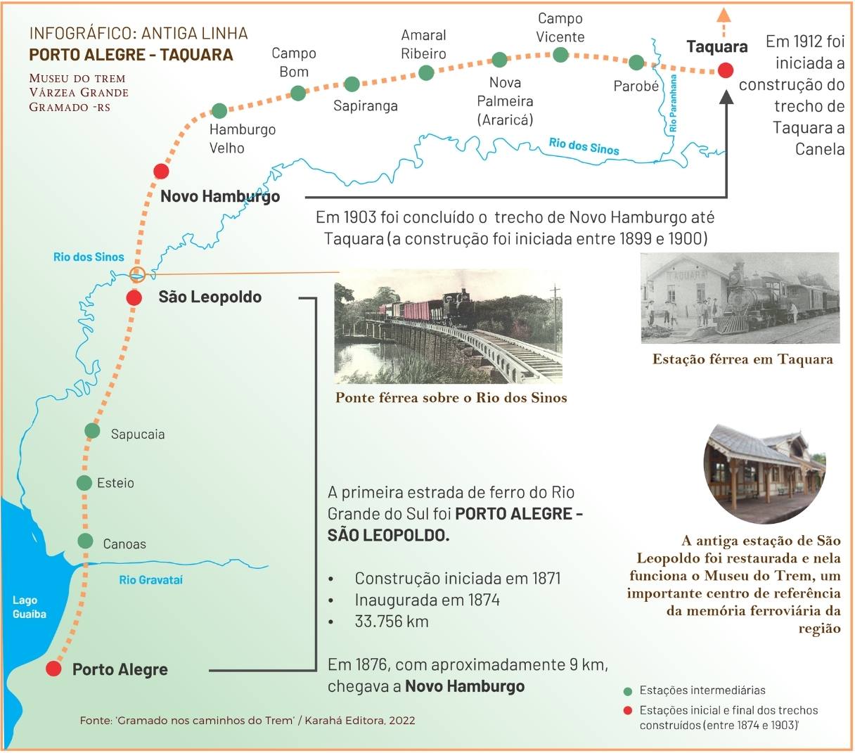 Infográfico Linha Porto Alegre-Taquara Voltar 12 de setembro de 2023 por Raimundo Nonato W. de Sousa Cavalcante   Documento MTVG.MAP.0009 Infog linha POA-TAQ Baixar Metadados Miniatura Compartilhar Descrição SumáriaInfográfico da antiga linha férrea Porto Alegre a Taquara.TítuloInfográfico Linha Porto Alegre-TaquaraRegistroMTVG.MAP.0009Estado de conservaçãoBomData/Período do item2020Tipo de aquisição:PesquisaPropriedade anteriorKarahá EditoraData de entrada no acervo12/09/2023Classificação, tipo ou materiaisImagem digitalPesquisa (créditos)Historiadores Alex Juarez Müller, Wanderley Cavalcante e Eduardo da Silva WeberAutor/EditorWanderley Cavalcante (historiador)ObservaçõesFonte: 'Gramado nos Caminhos do Trem' / Karahá Editora, 2022MapasInfográficos Continue navegando Linha Taquara-Canela a partir do quilômetro 20 Infográfico Malha Ferroviária do RS e Linha do Tempo Voltar para a página de itens