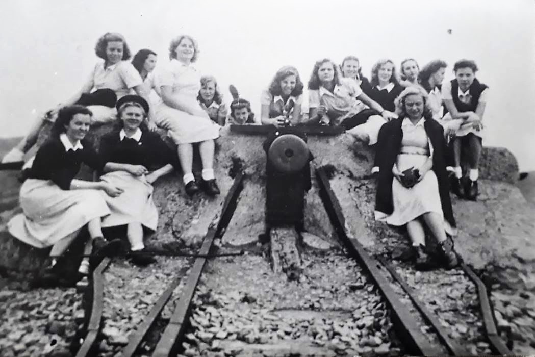 Moças no muro parador do Rabicho. Voltar 8 de setembro de 2023 por Raimundo Nonato W. de Sousa Cavalcante   Documento MTVG.IMG.0019 Moças colegiais no muro parador Baixar Metadados Miniatura Compartilhar Descrição SumáriaMoças colegiais posando no muro parador da Ponta Superior do Rabicho. Ao centro do muro vê-se um dispositivo de contenção e segurança do movimento do trem: uma mola para amortecer a lenta aproximação da composição em marcha à ré.TítuloMoças no muro parador do Rabicho.RegistroMTVG.IMGdig.0019Estado de conservaçãoBomData/Período do itemDécadas 1940/1950Classificação, tipo ou materiaisImagem digital e fotografia em papel.Iconografia e AudiovisualFotografias / Imagens > Sítio Ferroviário de Gramado > Rabicho e Girador Continue navegando Trecho de manobra na Ponta Superior do Rabicho com o trem Muro parador na ponta superior do Rabicho – 2019 Voltar para a página de itens