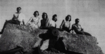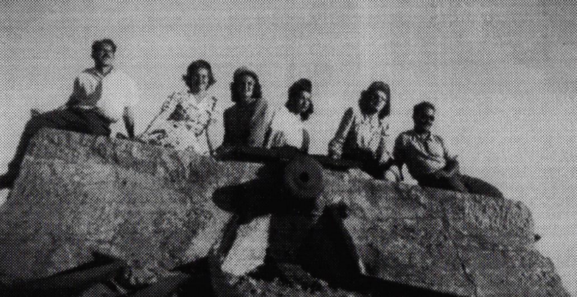 Pessoas posando no muro parador da Ponta Superior do Rabicho.