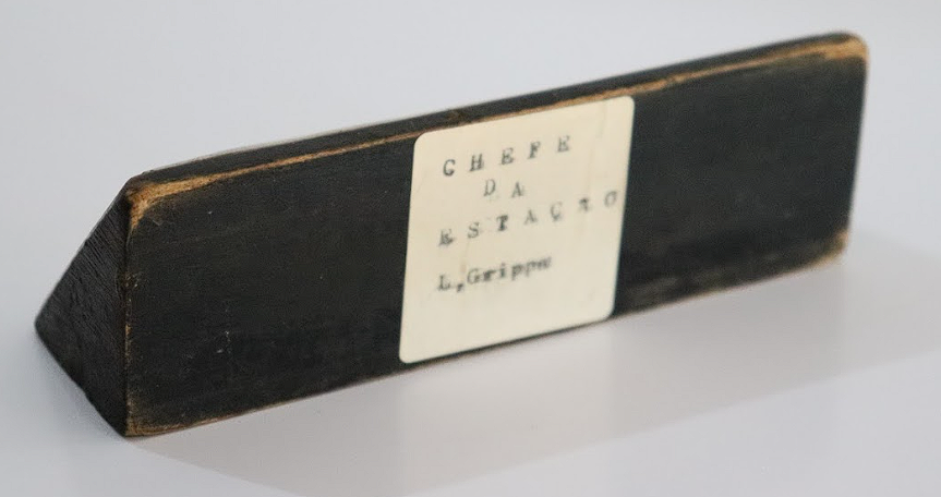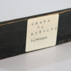 Placa de mesa de identificação de função Voltar 28 de novembro de 2023 por Raimundo Nonato W. de Sousa Cavalcante   Documento Placa agente 1 Baixar Anexos Placa Agente Metadados Miniatura Compartilhar Descrição SumáriaPlaca de identificação de mesa do Agente de Estação Laurindo Grippa. A parte traseira da peça contém uma etiqueta datilografada com "CHEFE DE ESTAÇÃO L. Grippa"TítuloPlaca de mesa de identificação de funçãoRegistroMTVG.OBJ.0013Estado de conservaçãoBomData/Período do itemAnos 1960/1970Tipo de aquisição:DoaçãoPropriedade anteriorLaurindo GrippaClassificação, tipo ou materiaisMadeiraObjetosEquipamentos de Comunicação > Equipamentos de Comunicação Visual Continue navegando Furador de papel Lanterna de sinalização Voltar para a página de itens