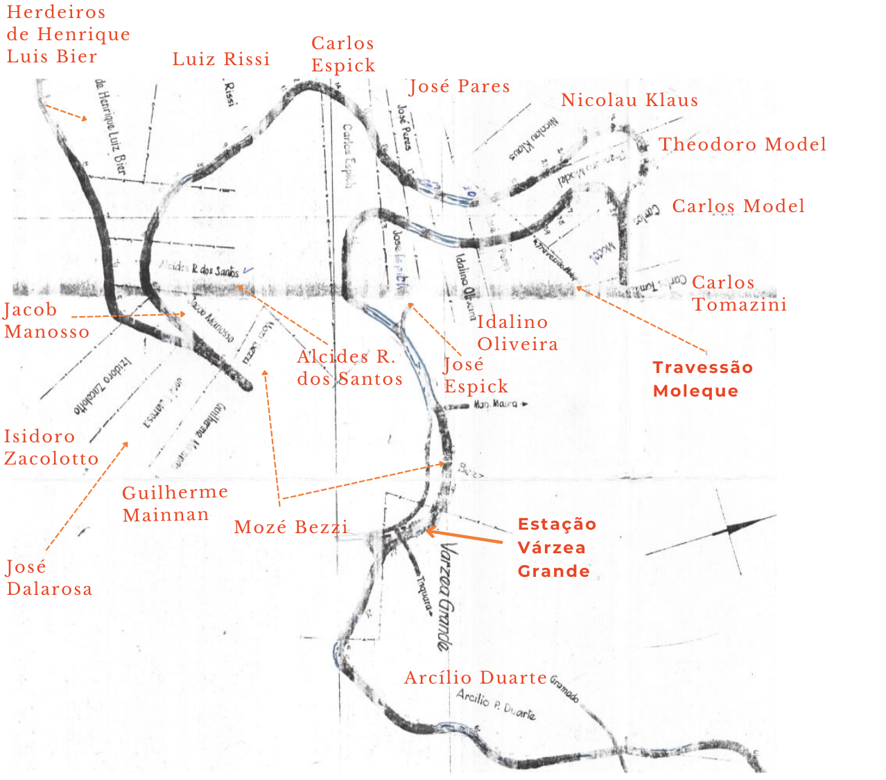 Planta do Rabicho com antigos proprietários de terras do entorno