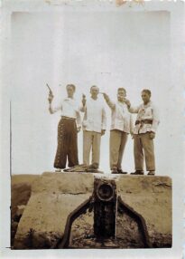 Ponta Superior do Rabicho – Homens posando empunhando armas Voltar 11 de setembro de 2023 por Raimundo Nonato W. de Sousa Cavalcante   Documento MTVG.IMG.0026 Ponta superior do Rabicho – Homens com armas Baixar Anexos Ponta superior do Rabicho 6 - Homens com armas_verso Metadados Miniatura Compartilhar Descrição SumáriaHomens posando empunhando armas no muro parador da Ponta Superior do Rabicho. O da esquerda é Miguel Bezzi.TítuloPonta Superior do Rabicho - Homens posando empunhando armasRegistroMTVG.IMGdig.0026Estado de conservaçãoBomData/Período do itemAnos 1940/50Tipo de aquisição:DoaçãoPropriedade anteriorAcervo família Bezzi-CasagrandeClassificação, tipo ou materiaisImagem digitalObservaçõesCedida por Lisete CasagrandeIconografia e AudiovisualFotografias / Imagens > Sítio Ferroviário de Gramado > Rabicho e Girador Continue navegando Homens simulam tiroteio naPonta Superior do Rabicho Planta com as Linhas da região da antiga Colônia de Nova Petrópolis e de linhas mais ao noroeste de Gramado. Voltar para a página de itens