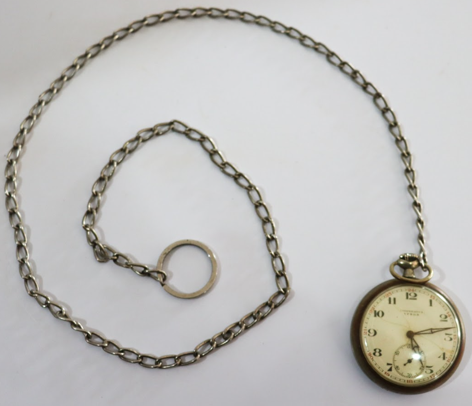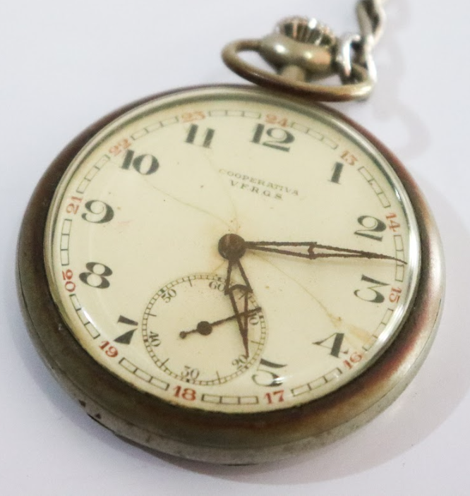 Relógio de bolso ou de algibeira Voltar 1 de dezembro de 2023 por Raimundo Nonato W. de Sousa Cavalcante   Documento Relógio de bolso 1 Baixar Anexos MTVG.OBJ.0023 Relógio de bolso 2 Metadados Miniatura Compartilhar Descrição SumáriaRelógio de formato redondo preso a uma corrente, geralmente carregado pelos homens em pequeno bolso de suas vestimentas. Marca [editar].TítuloRelógio de bolso ou de algibeiraRegistroMTVG.OBJ.0023Estado de conservaçãoBomData/Período do itemAnos 1910 a 1950Classificação, tipo ou materiaisMetal/vidroObjetosObjetos de Uso Pessoal > Objetos de auxílio, cuidados e conforto pessoais Continue navegando Placa de identificação de patrimônio Maçarico a querosene Voltar para a página de itens