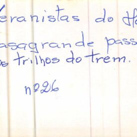 Veranistas passeando nos trilhos Voltar 14 de setembro de 2023 por Raimundo Nonato W. de Sousa Cavalcante   Documento MTVG.IMG.0059 Ponta superior do Rabicho 7 – Posando nas encostas Baixar Anexos MTVG.IMG.0059 Ponta superior do Rabicho 7 - Posando nas encostas_verso Metadados Miniatura Compartilhar Descrição SumáriaVeranistas passeando nos trilhos das encostas do RabichoTítuloVeranistas passeando nos trilhosRegistroMTVG.IMGdig.0059Estado de conservaçãoBomData/Período do itemDécada de 1940Tipo de aquisição:DoaçãoPropriedade anteriorAcervo Família Bezzi CasagrandeClassificação, tipo ou materiaisImagem digitalObservaçõesCedida por Lisete CasagrandeIconografia e AudiovisualFotografias / Imagens > Sítio Ferroviário de Gramado > Região e comunidade Continue navegando Moradores e veranistas Saudação Voltar para a página de itens